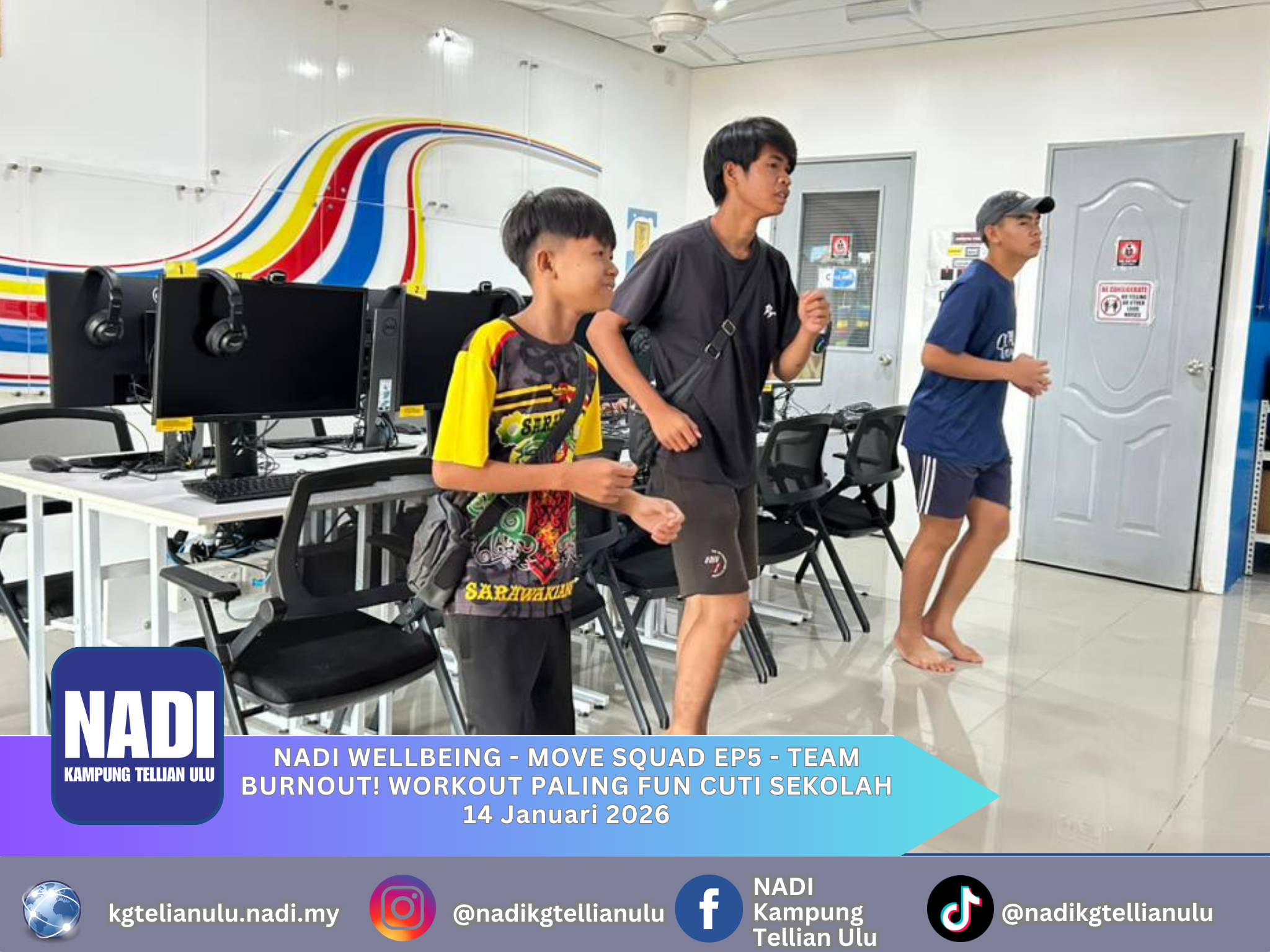 14 Januari 2026, Rabu 03.00-04.00 petang NADI Kampung Tellian Ulu NADI Wellbeing – Move Squad Episod 5: Team Burnout! bertujuan memupuk kecergasan fizikal pelajar sekolah melalui senaman berpasukan yang menyeronokkan semasa cuti sekolah, di bawah bimbingan Coach Amirah. Kelebihannya merangkumi […]