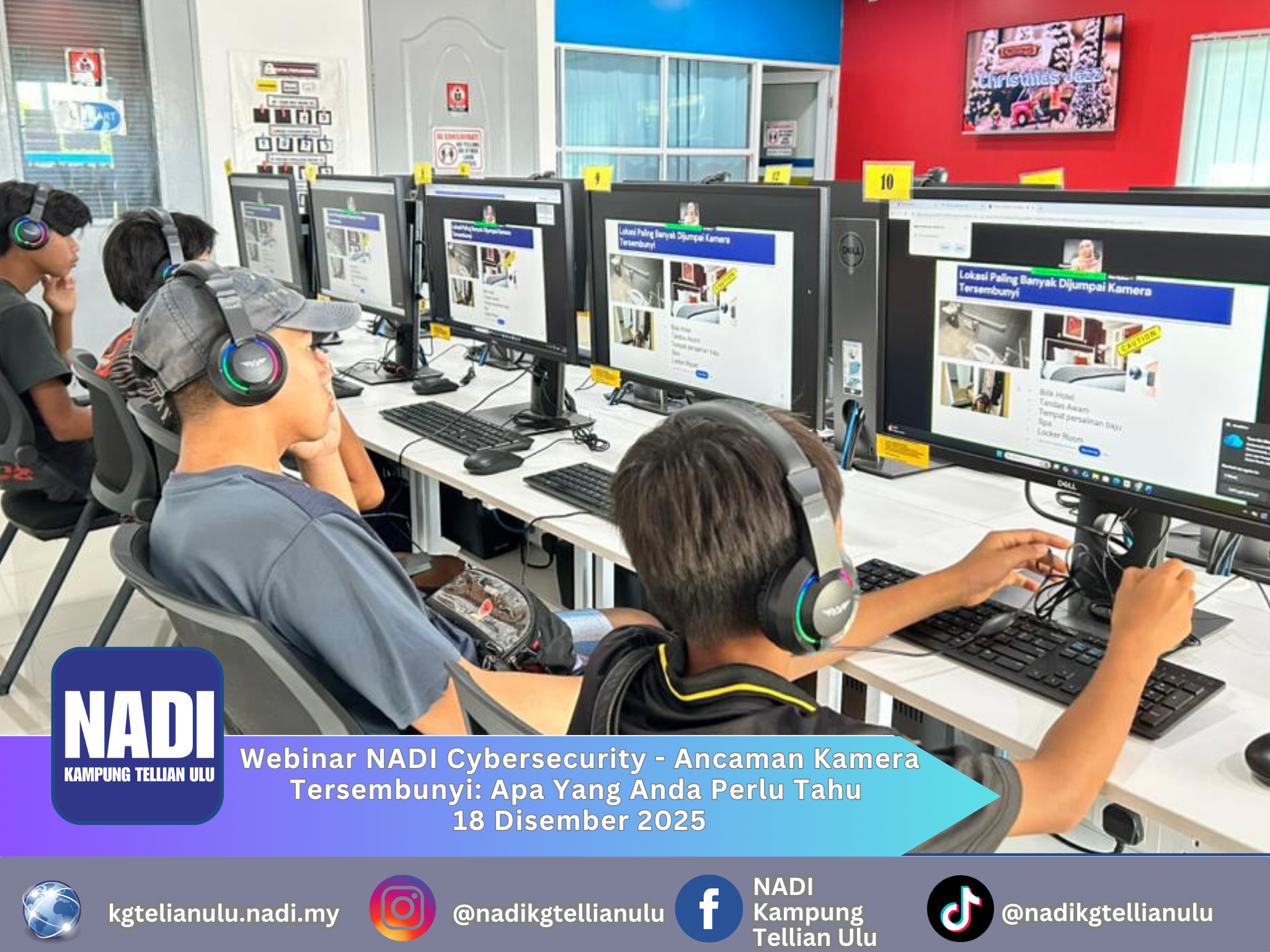Khamis, 04 Disember 2025 | 03.00 – 04.30 Petang NADI Kampung Tellian Ulu Objektif Webinar NADI Cybersecurity – Risiko Kamera Tersembunyi: ~ Meningkatkan kesedaran komuniti tentang ancaman penggunaan kamera tersembunyi dalam kehidupan seharian ~ Melengkapkan peserta dengan pengetahuan untuk mengenal […]
