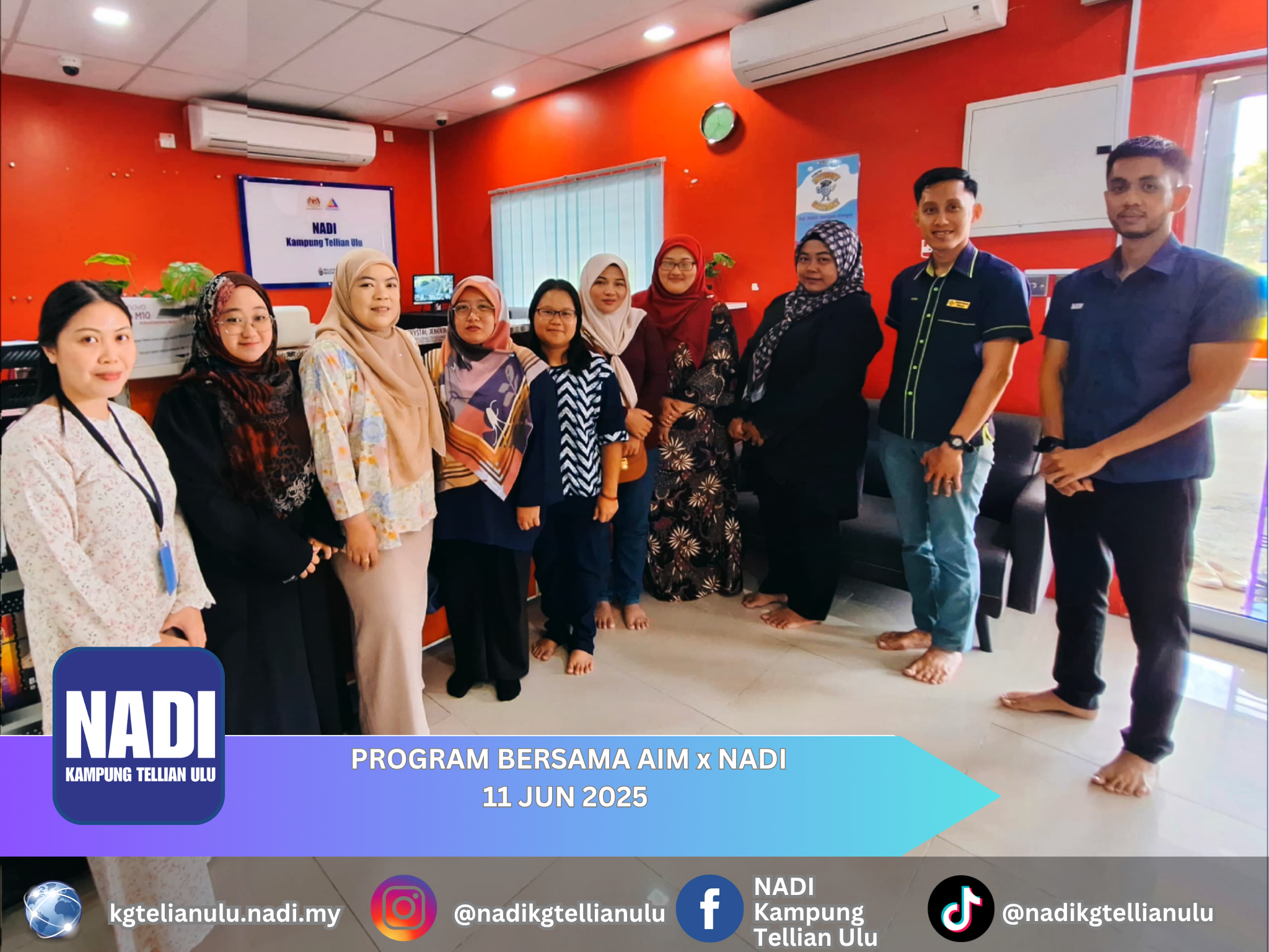 NADI Kampung Tellian Ulu telah mengadakan Program Bersama Amanah Ikhtiar Malaysia ( AIM ) x NADI pada 11 Jun 2025,Rabu bermula pada jam 08.30 pagi sehingga 12.00 tengah hari.
